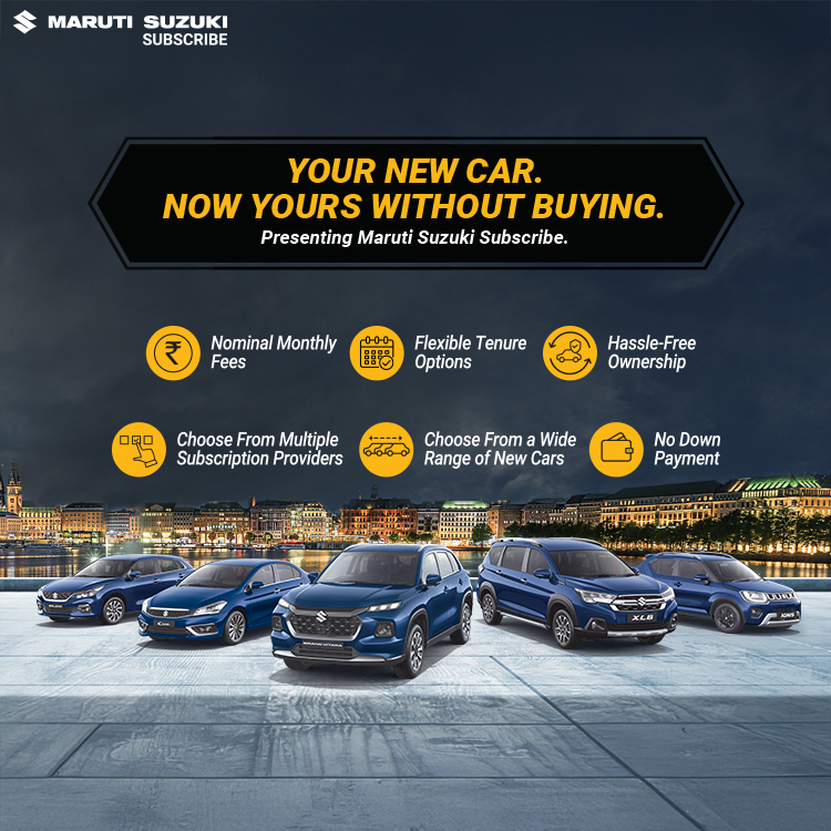 Maruti Suzuki Subscribe enables all customers to enjoy driving their preferred Maruti Suzuki cars without having to deal with all the financial responsibilities that come with owning a car.All you need to do is opt for a monthly subscription plan at a fixed monthly fee, which includes the routine maintenance and insurance costs, and choose a flexible tenure. At Kiran Motors in, , Thane, all Hatchback, Sedan, SUV, the MUV models line-up includes Baleno, Invicto, EVitara, Jimny, Ciaz, Ignis, Fronx, Grand Vitara, XL6. Here, you will enjoy Maruti Suzuki Subscribe benefits such as: