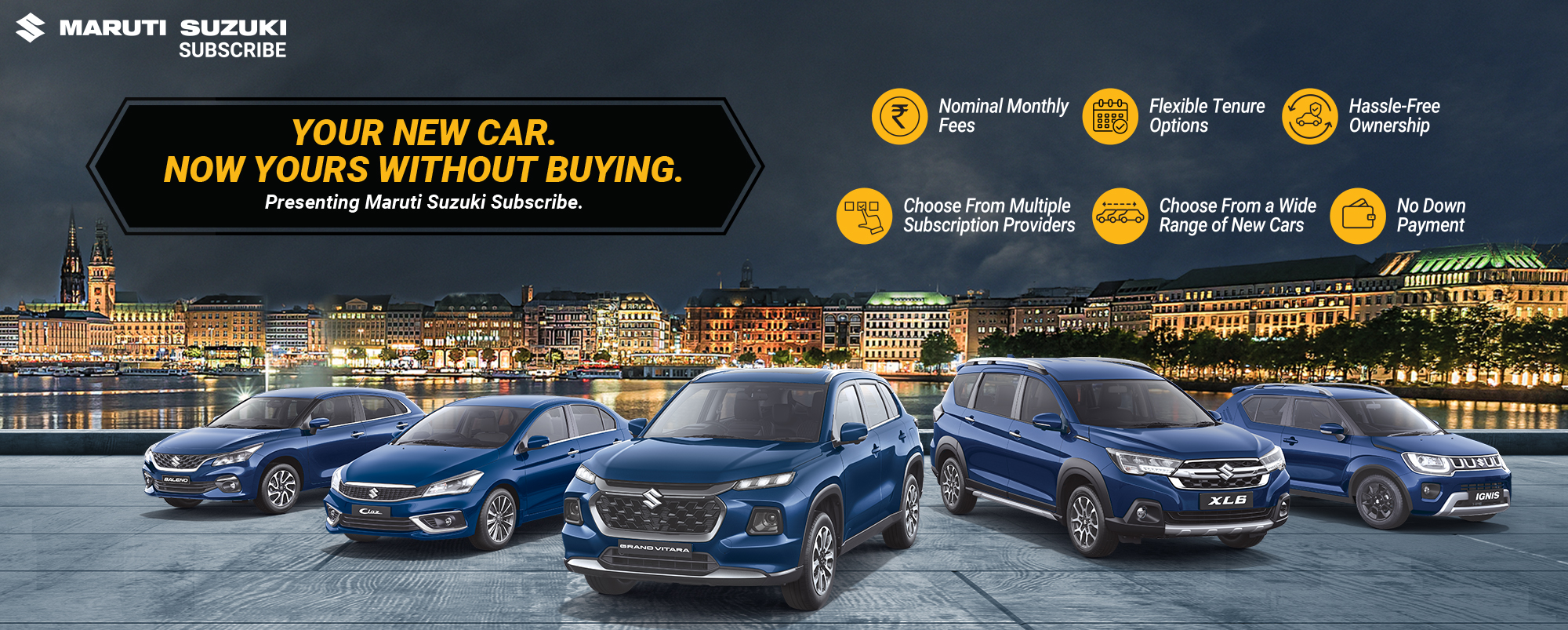 Located in Thane, Kiran Motors offers a plethora of options of Nexa cars for Maruti Suzuki Subscribe. You can choose your desired Maruti Suzuki car and drive it home at nominal monthly fees for a variety of flexible tenure periods. Whether you prefer Hatchback, Sedan, SUV or even MUV you are sure to find it at Kiran Motors, with an easy Maruti Suzuki Subscribe plan.